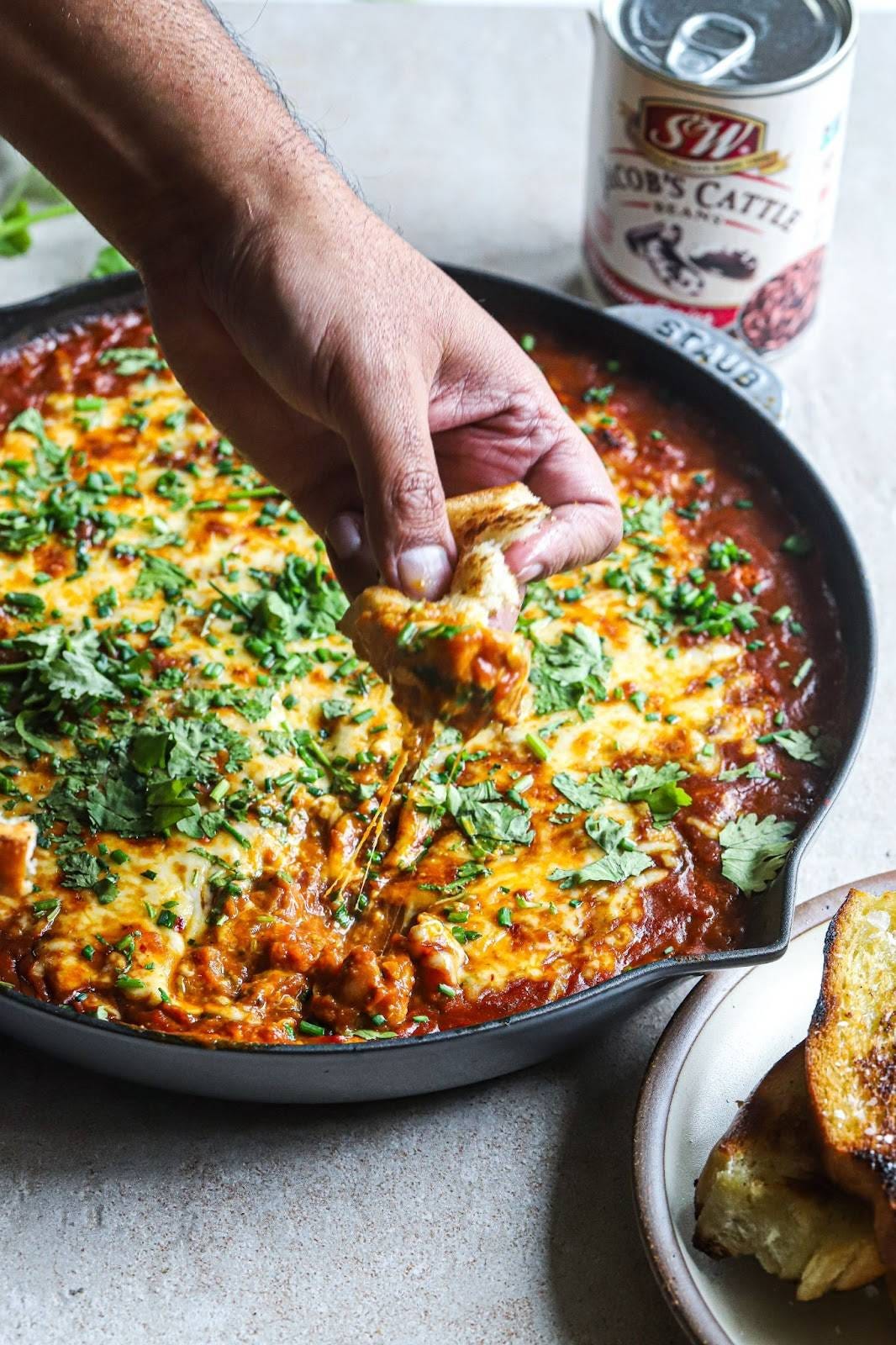 This one is pure comfort. Hearty beans, cozy tikka masala flavors, and a cheesy, bubbly top that begs to be scooped up with naan or crackers. Easy, satisfying, and always a crowd-pleaser.